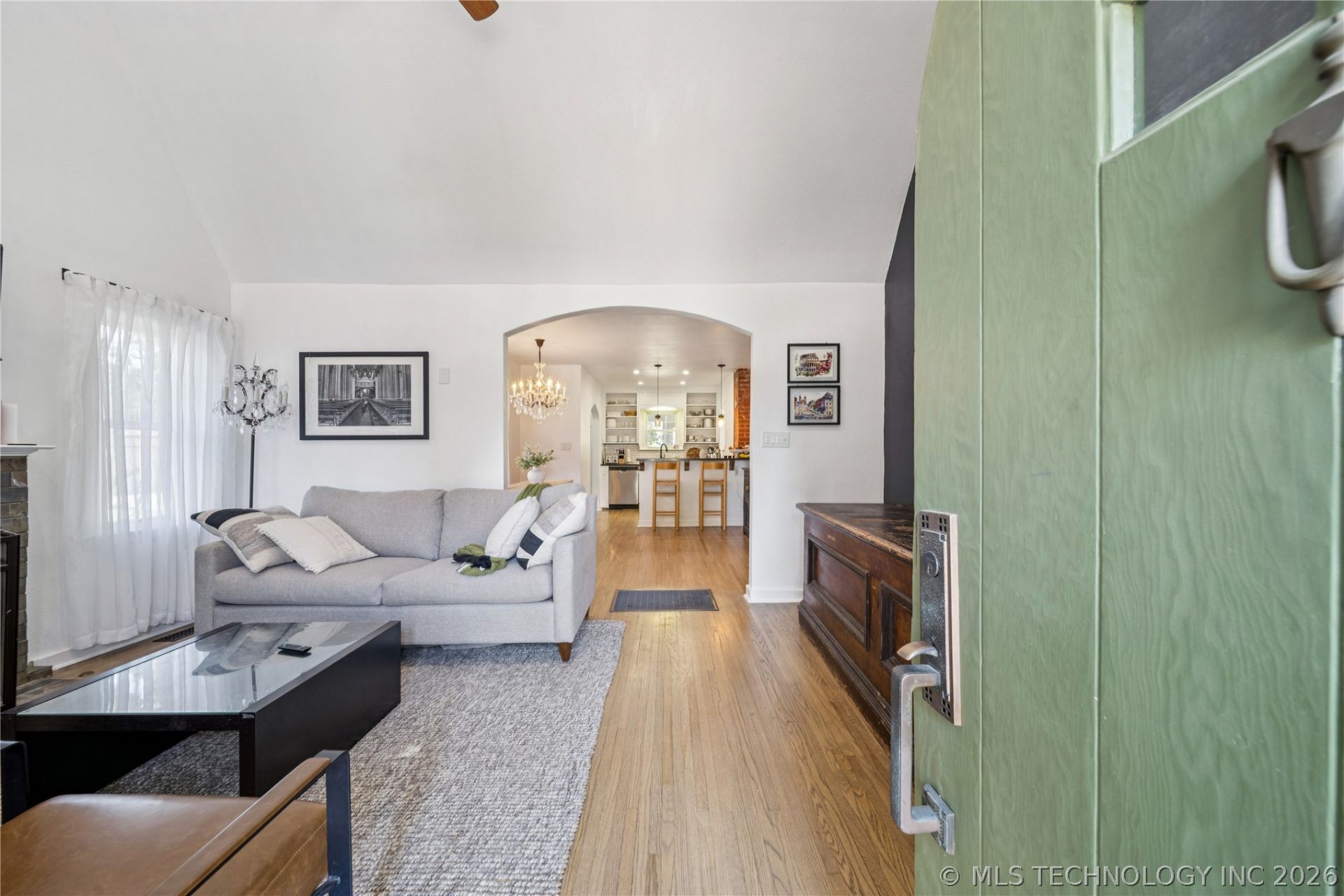 Welcome to this charming 1930s bungalow in Midtown Tulsa, featuring 2 bedrooms and 1 bathroom in a character-filled living space. This home offers original hardwood floors, vaulted ceilings, and a cozy gas-log fireplace in the living room. The updated bathroom blends classic tilework with modern fixtures, creating a clean and stylish space. A bright bonus room off the main living area is perfect for an office, reading nook, or studio. Recent upgrades in 2024 include a new hot water tank and updated plumbing all the way back to the meter, offering peace of mind and added value. Outside, enjoy a fenced backyard,covered front porch, and a spacious corner lot. Conveniently located just minutes from TU, Kendall Whittier, Cherry Street, and downtown.
